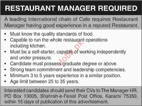 Restaurant Manager Jobs at Cafe 2020 Job Advertisement ...