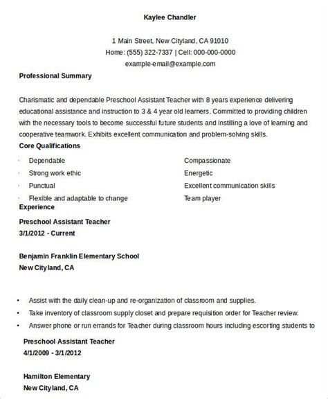 Preschool Teacher Assistant Resume. The role of assistant teachers in the classroom is vital as you are providing the lead teacher with extra hands, as well as assisting them in the development of the students. A preschool teacher resume sample that gets jobs.