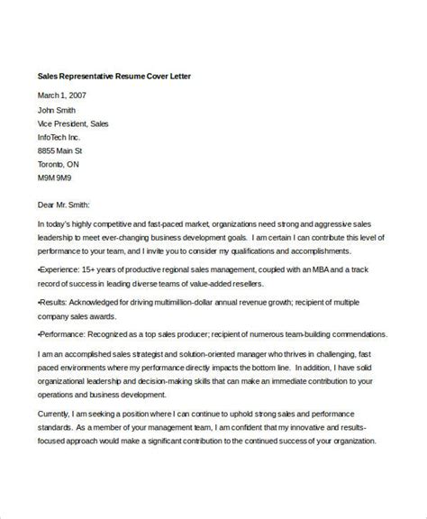 Sales Representative Letter. Employers see more cover letters than they would. Retail sales representatives leverage skills in customer needs assessment, extensive product knowledge, and customer service strategies to drive sales and revenue growth in busy retail environments.