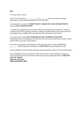Work Experience Example Letter. A work experience letter is a formal document in which the work experience of the person is mentioned. This is an official letter which is written on the letterhead of the company and must be issued and Experience Letter Sample with Example.