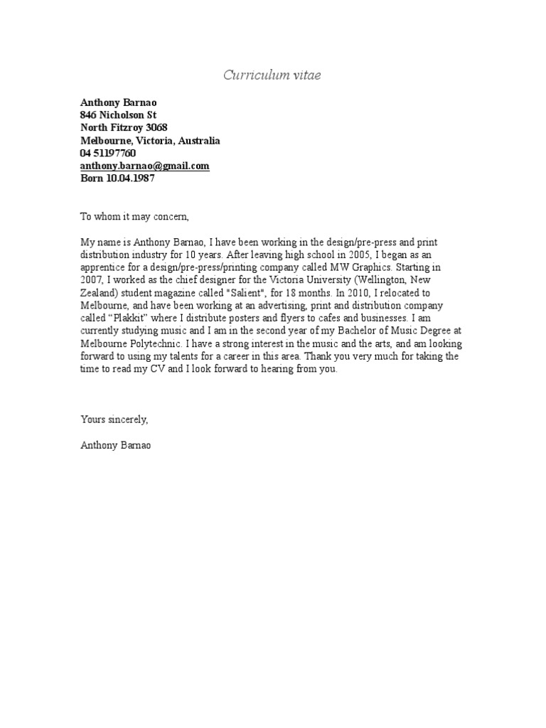 Tony Barnao CV.doc | Adobe In Design | Graphic Design