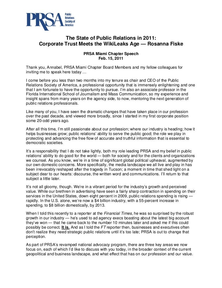 State of Public Relations in 2011 — Rosanna Fiske Speech
