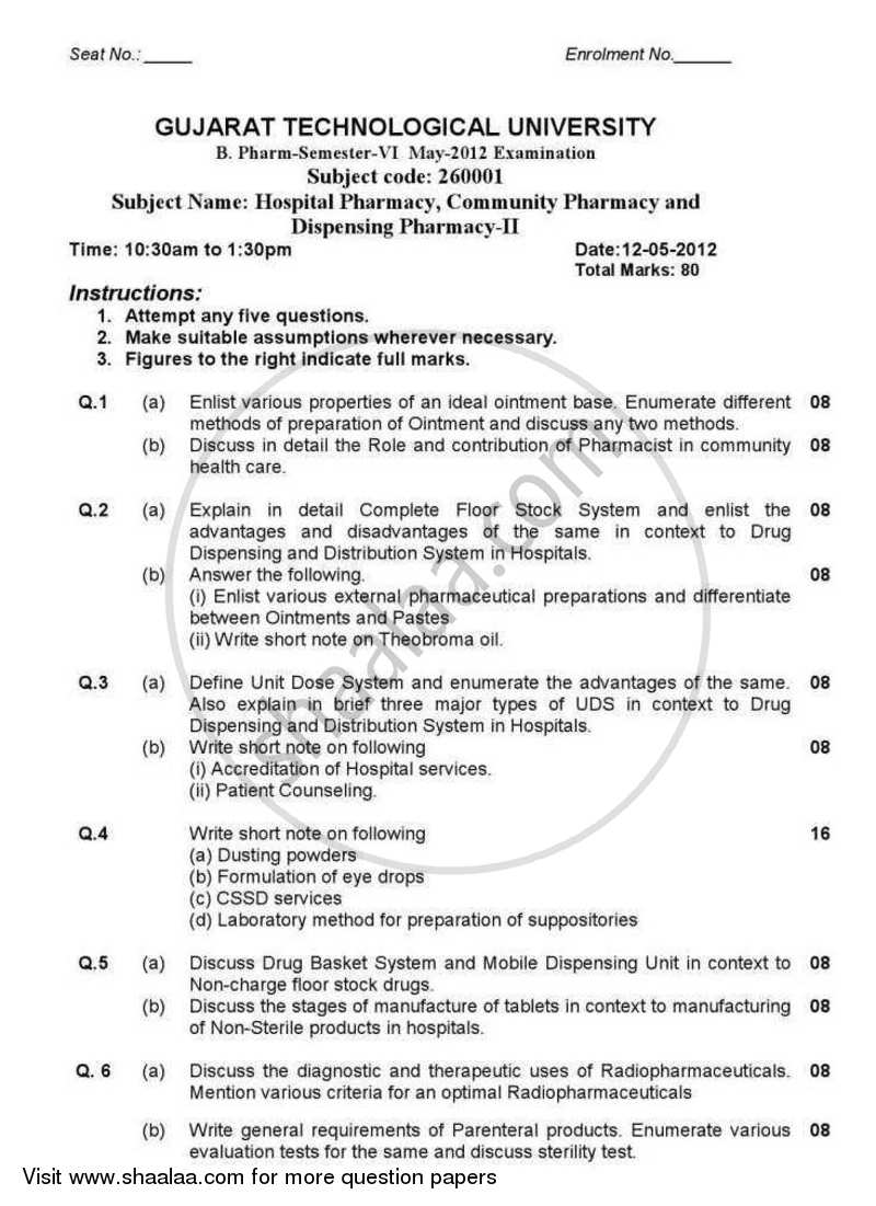 Hospital Pharmacy, Community Pharmacy and Dispensing ...